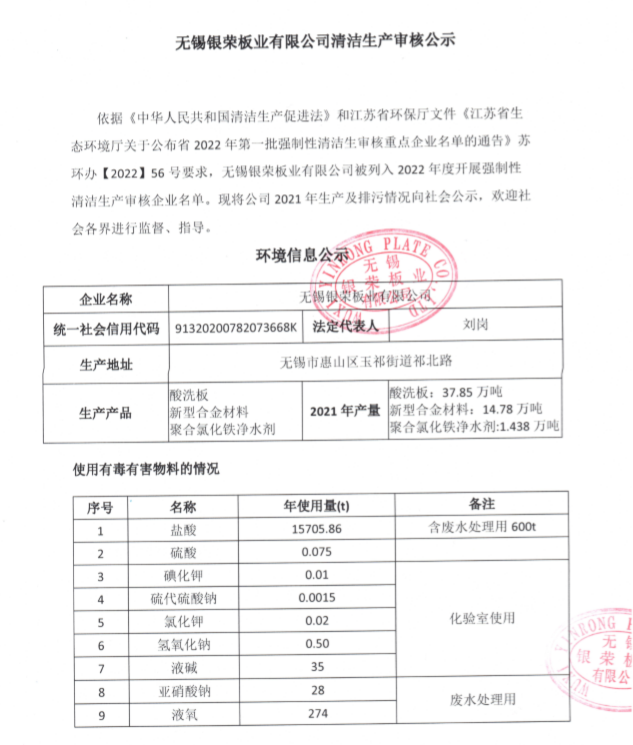 無錫銀榮板業(yè)有限公司清潔生產審核公示
